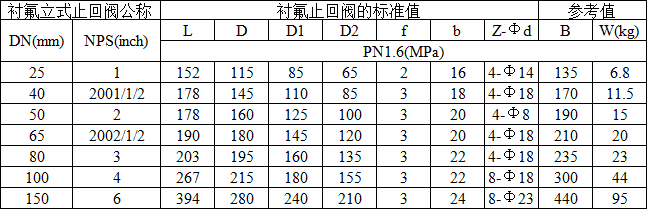 H42F46-10/16C衬氟立式止回阀技术规范:
