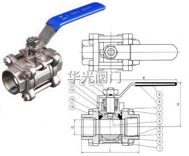 Q11F-16-64P不锈钢三片式丝口球阀概述: