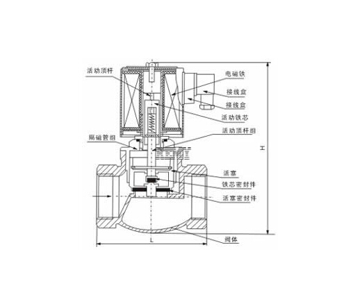 原理:通电时,电磁线圈产生电磁力把关闭件从阀座上提起,阀门打开;断电时,电磁力消失,弹簧把关闭件压在阀座上,阀门关闭。
